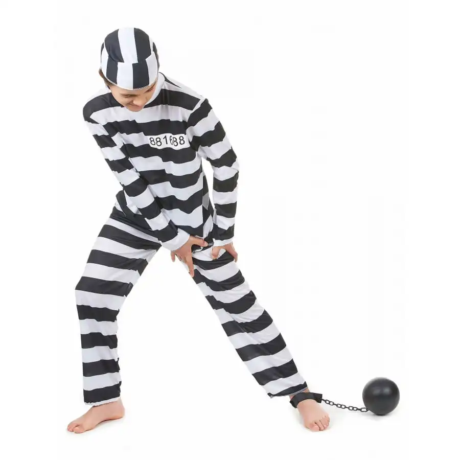Au lieu des costumes de super héros habituels, optez pour un modèle plein d’originalité. Que diriez-vous cette fois-ci d’un déguisement de hors la loi pour votre petit garçon adoré ? Ce sera chose faite avec ce déguisement de petit prisonnier rayé noir et blanc. Cet ensemble trois pièces, à la fois léger et confortable, est constitué tout d’abord par un haut élastique à manches longues, avec rayures noires et blanches. Le matricule “881688” est inscrit sur le vêtement au niveau de la poitrine. Il comporte aussi un pantalon assorti, élastique au niveau de la taille. Un bonnet rayé de noir et de blanc est également inclus dans le lot. A noter que le déguisement est proposé en différentes tailles pour les 4 à 12 ans.