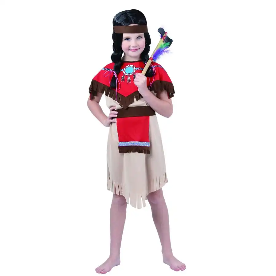 Déguisement De Petite Indienne Marron Et Rouge