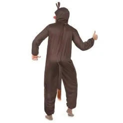 Une cagoule de la même couleur et orné de faux bois en mousse est incluse, ainsi qu’une queue avec un bout touffu.