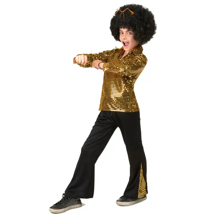 Le déguisement disco doré pour enfant est destiné aux garçons de 5 à 12 ans.
