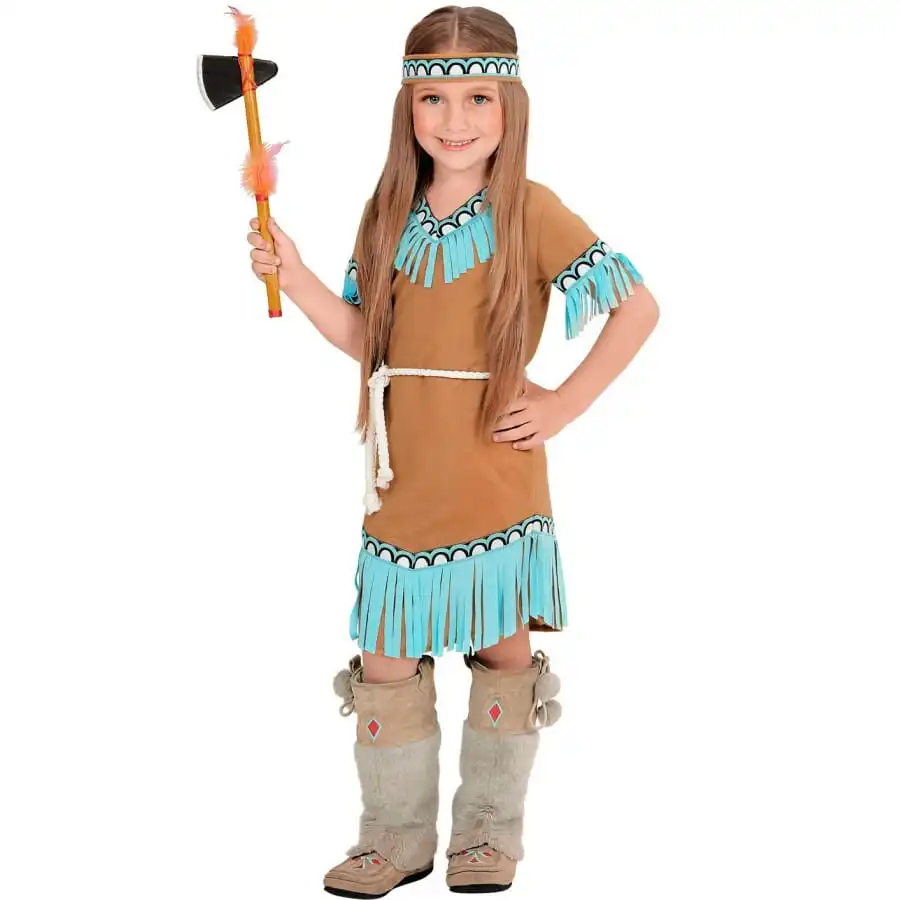 Votre fille deviendra la belle Pocanhontas ou choisira elle-même sa tribu indienne préférée, avec notre déguisement marron bleu de petite indienne.