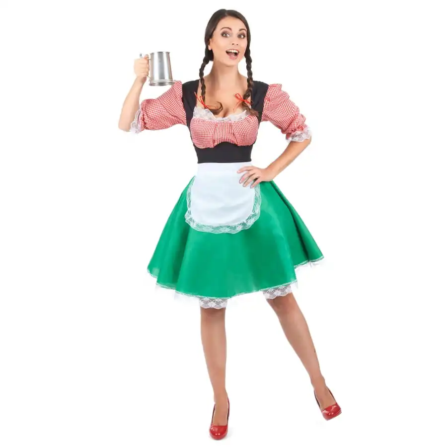Ce déguisement robe verte bavaroise pour adulte comprend une robe et un tablier.