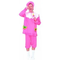 Si vous avez l’habitude de faire les fous entre copains, cette idée va assurément vous plaire, notamment à l’occasion d’un enterrement de vie de célibataire. Faufilez-vous dans ce déguisement rose de bébé pour adulte et sortez vos blagues les plus marrantes. Cet ensemble dédié à la gent masculine comporte une tunique rose à manches longues qu’il suffit de nouer dans le dos. Le vêtement est agrémenté d’une collerette blanche liserée de rose, ainsi que de deux petites poches cousues au bas. Il s’agit d’un modèle ample, confortable et facile à porter. En dessous, vous porterez un pantacourt rose à taille élastique. Sa longueur descend jusqu’en dessous des genoux et se termine par une fine dentelle blanche. Pour parfaire ce costume de gros bébé, vous n’aurez plus qu’à enfiler le bonnet rose à visière rigide. Les fous rires vont éclater !