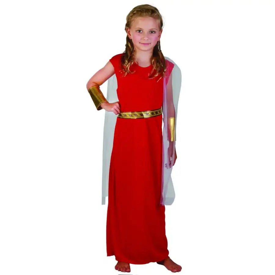Ce dĂ©guisement rouge de petite romaine s’invite dans la garde-robe de votre petite fille pour le spectacle de l’Ă©cole.