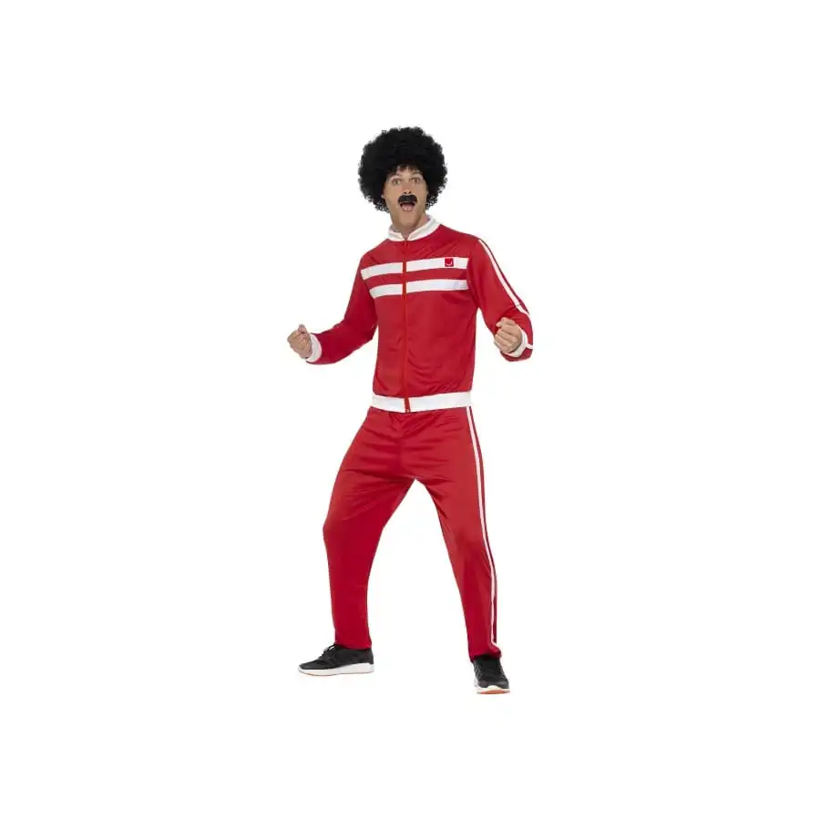 Ce genre de tenue Ă©tait très en vogue dans les annĂ©es 70 et 80, surtout pour les sportifs alors si vous ĂŞtes un sportif et que vous allez Ă une fĂŞte Ă thème rĂ©tro, mettez ce dĂ©guisement survet rouge old school, qui vous ira Ă merveille. De plus, il est tout simple avec sa veste de couleur rouge avec une encolure blanche, deux bandes blanches au niveau de la poitrine et sur les manches. Le pantalon est bien Ă©videmment fait avec le mĂŞme tissu rouge, avec des bandes blanches sur les cĂ´tĂ©s. Vous pourrez rajouter, Messieurs, une perruque ou d’autres accessoires, qui affirmeront encore plus le personnage que vous incarnerez.