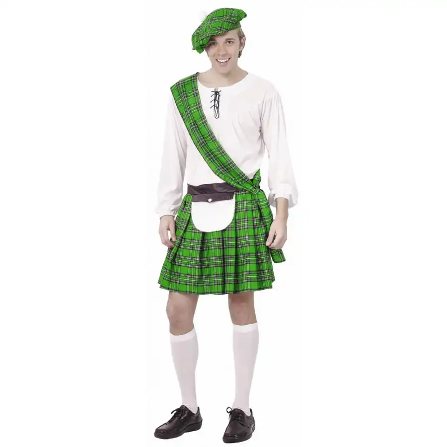 Évadez-vous vers les contrées écossaises le temps d’un carnaval ou d’une soirée costumée dans ce déguisement vert d’écossais pour adulte.