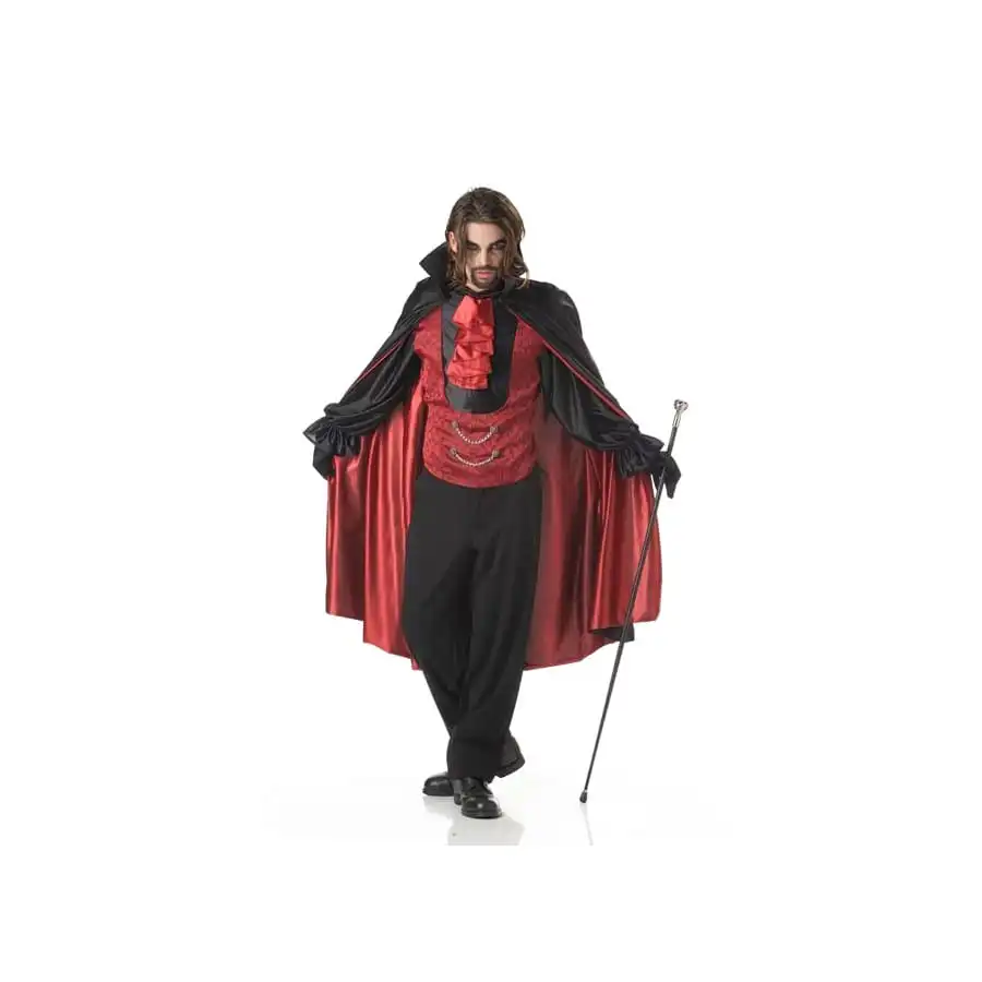Pour la prochaine nuit d’Halloween votre entrĂ©e fera son petit effet sur les autres invitĂ©s, grâce Ă l’Ă©lĂ©gante tenue de vampire avec cape pour homme.