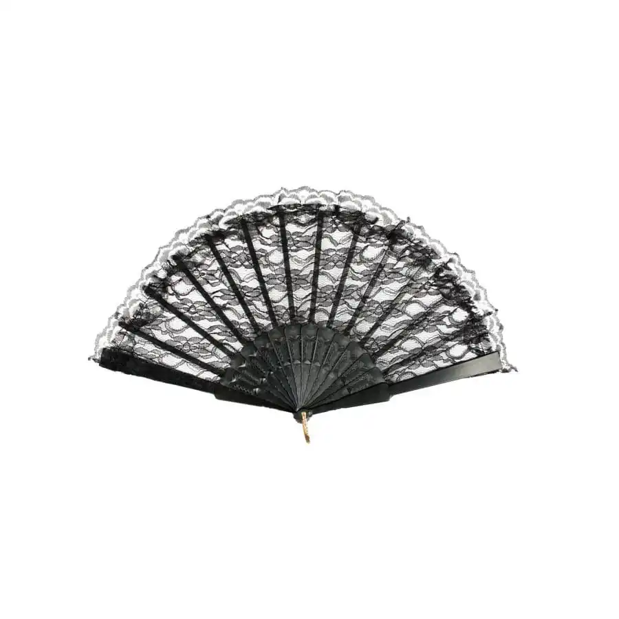 L’Ă©ventail noire en dentelle mesure 24 cm de largeur.