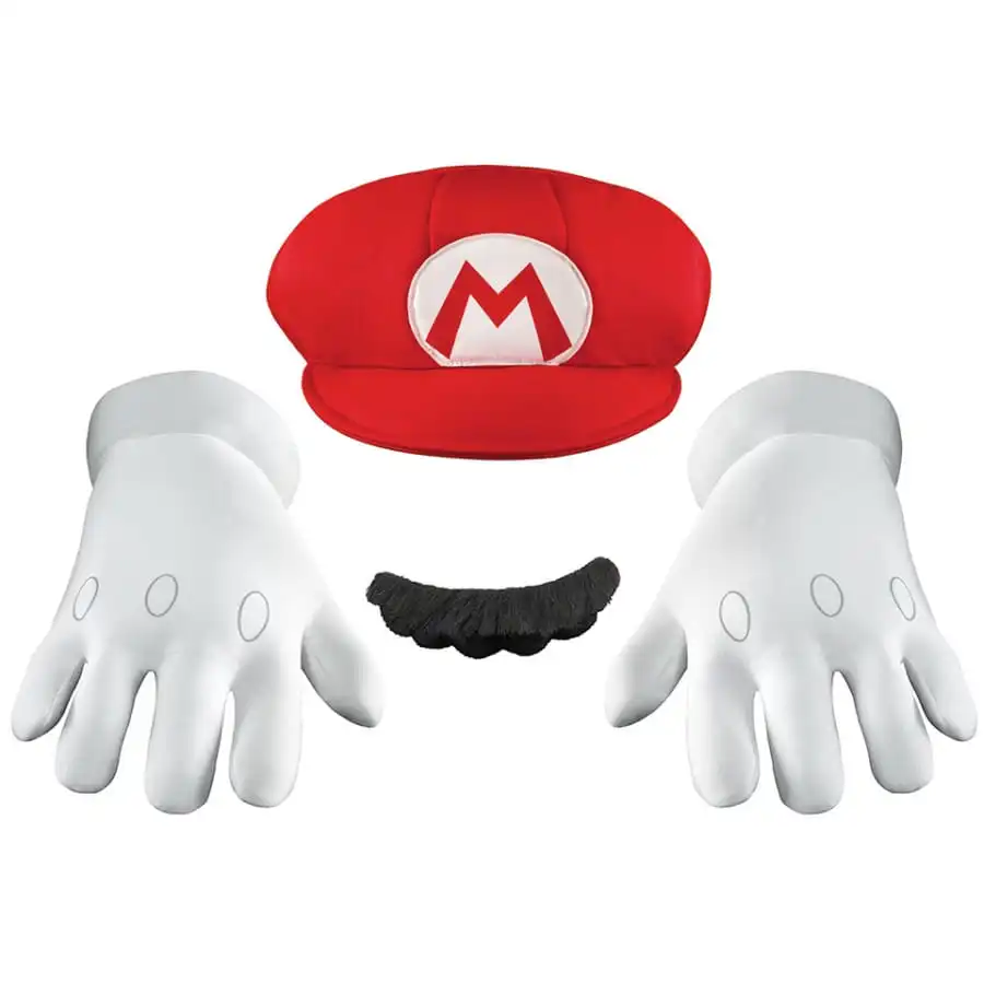 Nous vous présentons un ensemble composé de gants, moustache et casquette de Mario pour adulte.