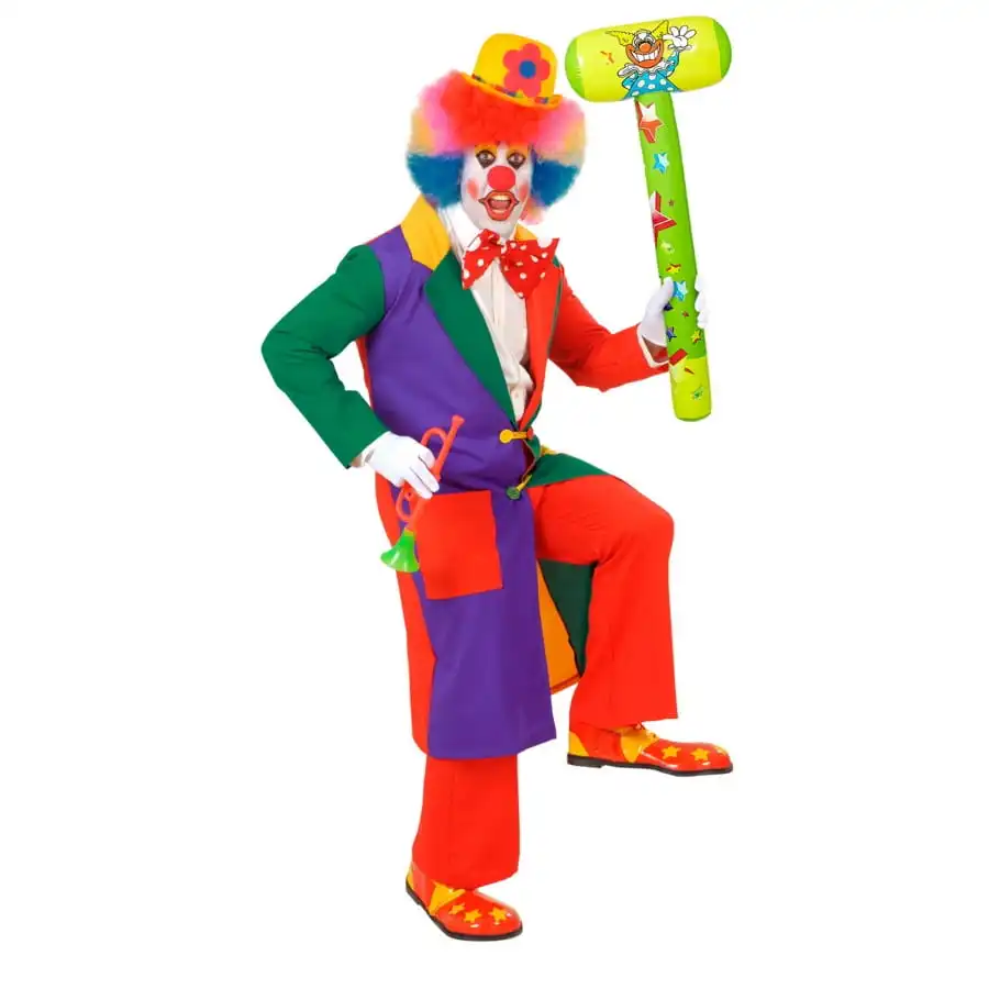 Ce grand marteau de clown vert jaune Ă gonfler est aurĂ©olĂ© sur le manche de motifs en forme d’Ă©toiles multicolores et imprimĂ© d’un clown sur la tĂŞte du marteau.