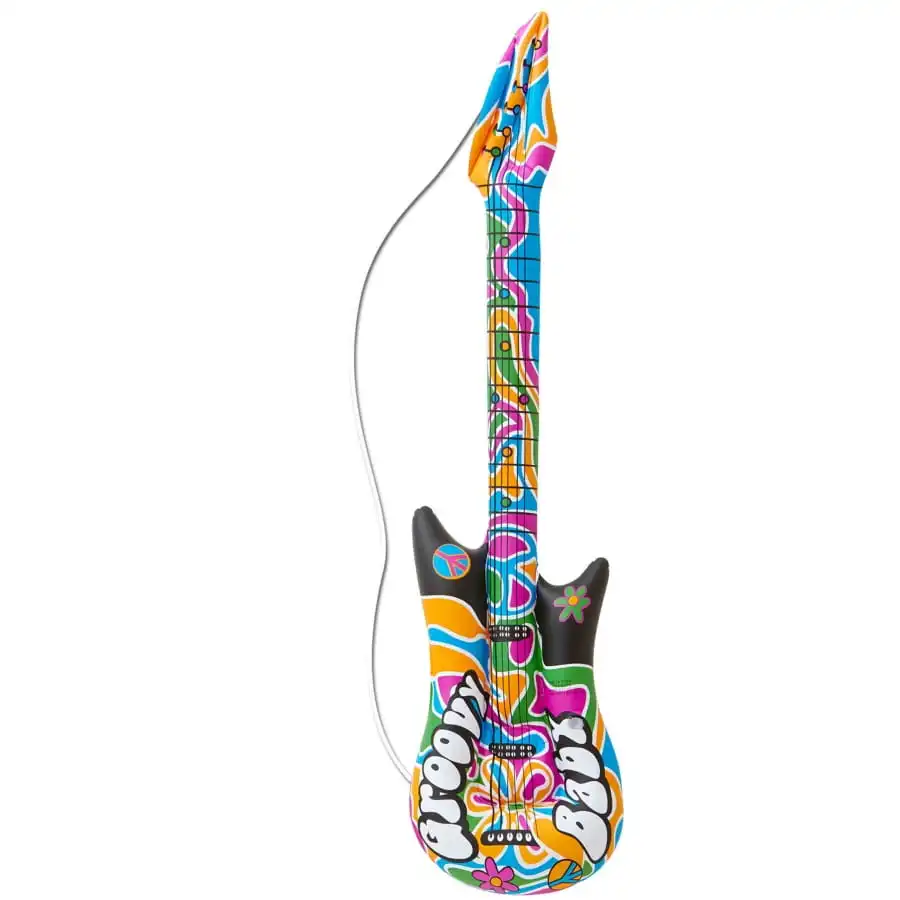 Faites votre one-man-show et assurez le spectacle, en Ă©lectrisant l’atmosphère grâce Ă notre guitare Ă©lectrique hippie gonflable de 105 cm.