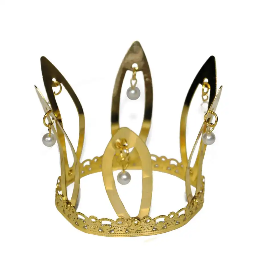La haute couronne dorée avec perles blanches pour adulte est en métal.