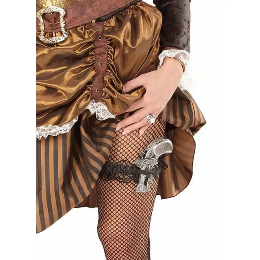 La jarretière noire avec faux revolver est un accessoire destiné aux femmes.