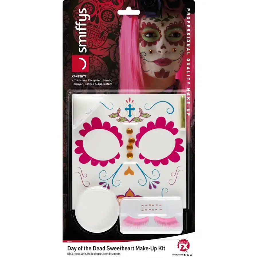 Savez-vous ce que produit la culture mexicaine mĂ©langĂ©e Ă un style ultra girly ? Munissez-vous du kit de maquillage jour des morts girly pour obtenir un rĂ©sultat des plus Ă©poustouflants. Cet article cosmĂ©tique est composĂ© de plusieurs Ă©lĂ©ments multicolores et phosphorescents. Vous disposerez de transferts Ă motifs inspirĂ©s de la culture mexicaine, de peinture pour visage, de bijoux de maquillage, d’un crayon, de faux cils et aussi d’un applicateur.