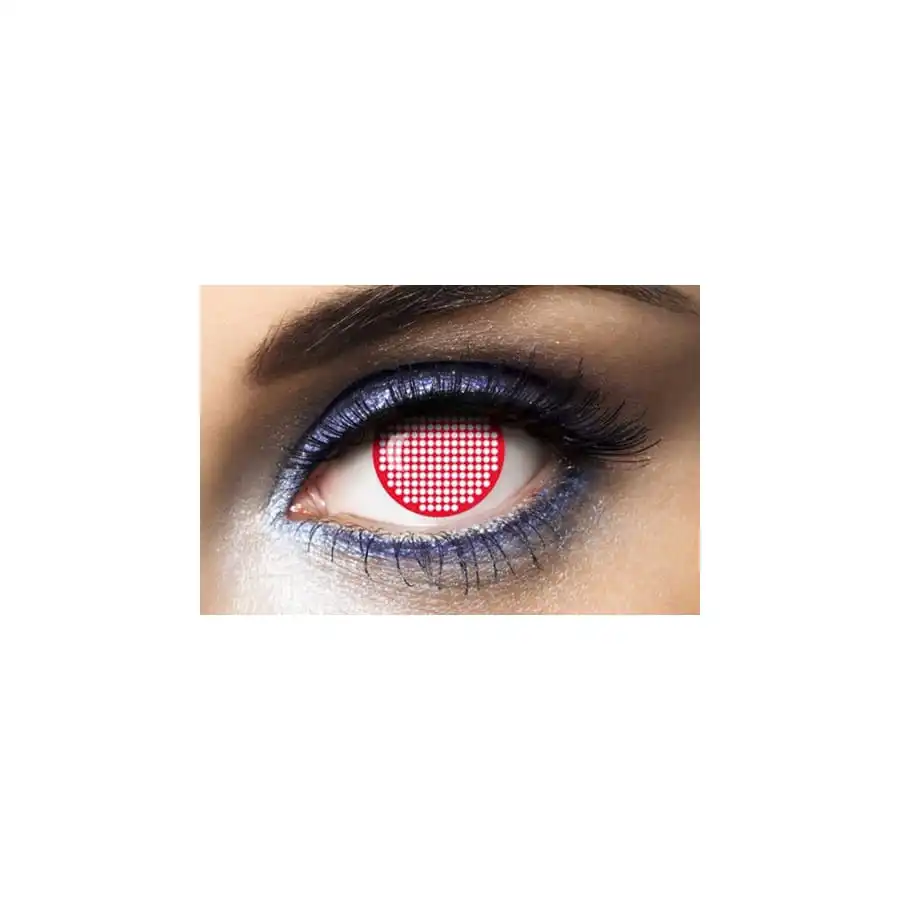 Jusqu’oĂą iriez-vous pour habiller votre regard ? Pour avoir un look dĂ©mentiel, optez pour ces lentilles de contact Ă motif Ă©cran de couleur rouge. Elles Ă©voquent un mĂ©lange de science fiction et de film d’horreur. Ces lentilles sont de nature souple, sans dioptries et chacune d’elles est fournie avec un flacon en verre avec de la solution saline. Leur dĂ©lai d’utilisation s’Ă©lève Ă un an.