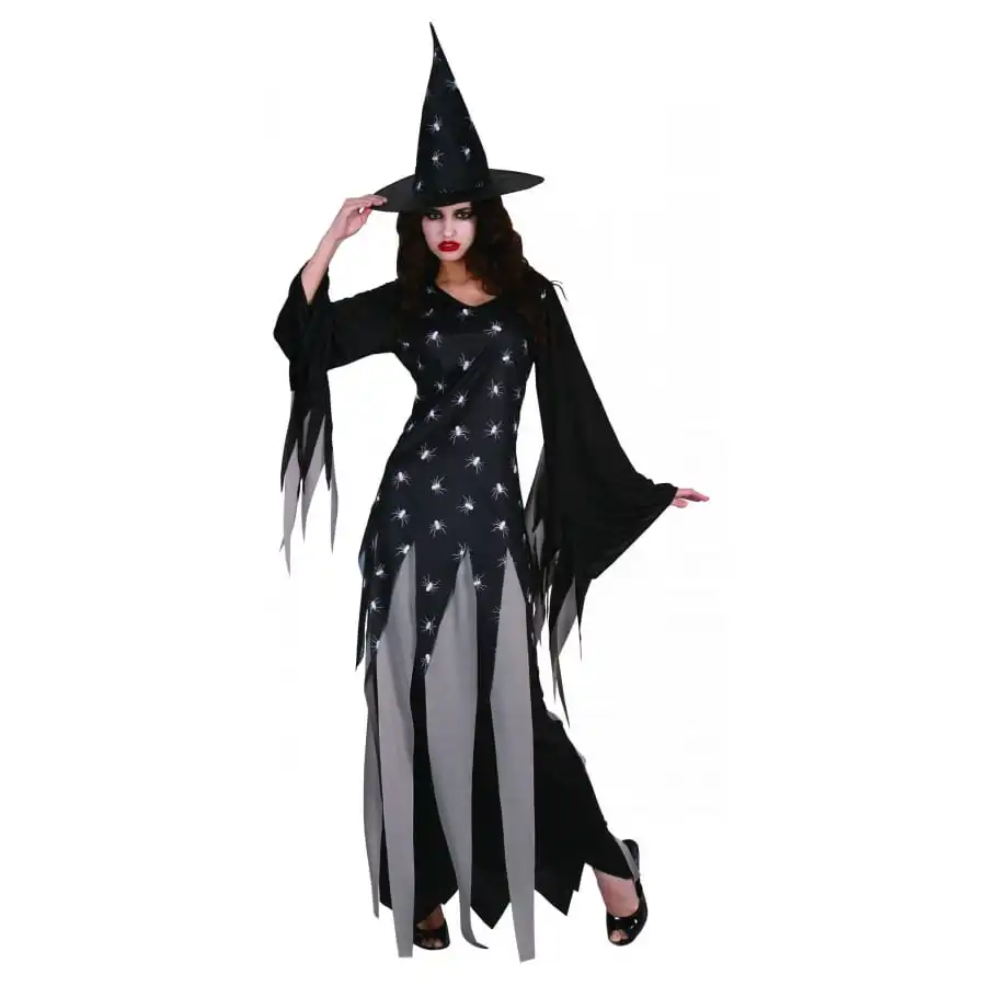 Jouez la carte de l’originalité pour votre déguisement à l’occasion de la fête des morts. Si vous voulez une tenue de sorcière, nous avons un article taillé pour vous. En effet, il s’agit du long costume araignée en lambeau de sorcière, disponible sur notre site. Il est formé d’une longue tunique noire, fabriquée dans un tissu à motifs araignées. Ses manches longues évasées présentent des lambeaux gris et noirs qui pendent. Un chapeau de sorcière, à calotte pointue, fait dans la même étoffe, accompagne le costume. Le bas se correspond à une longue jupe noire, avec des franges grises par-dessus. Ses bordures, taillées en dents de scie, donnent un effet déchiqueté.