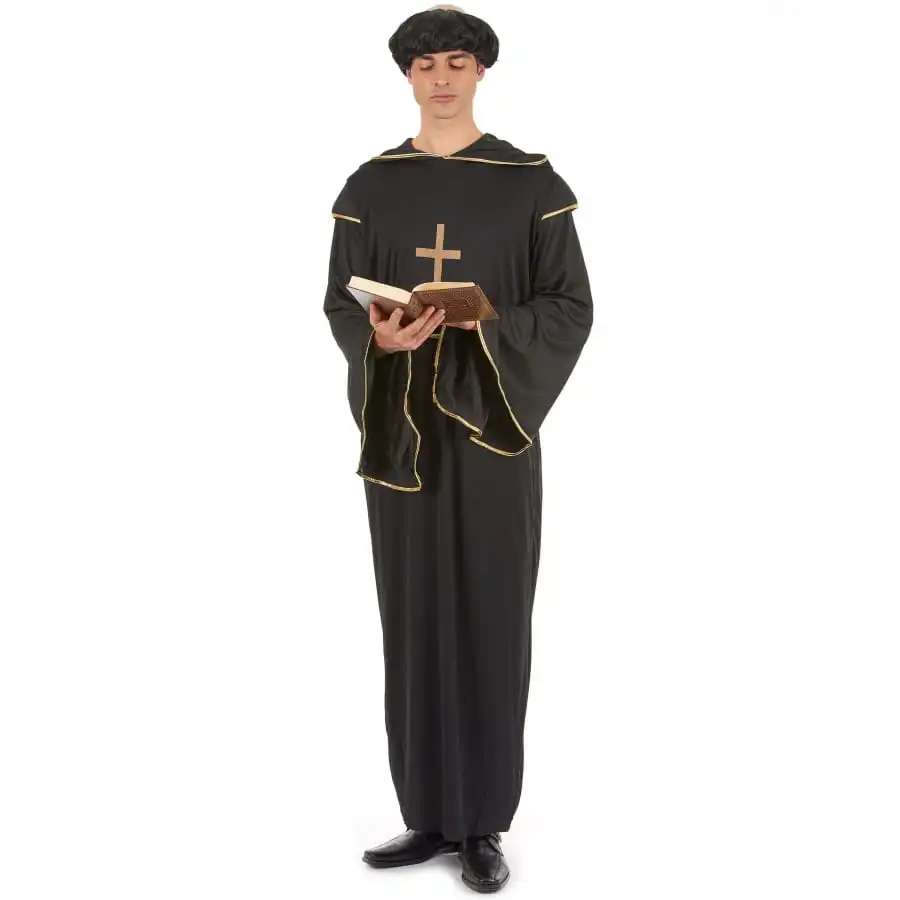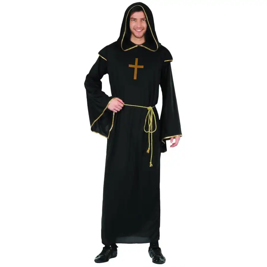 Long déguisement noir et doré de religieux idéal pour vous habiller à l’occasion des fêtes costumées ou d’un enterrement de vie de garçon.