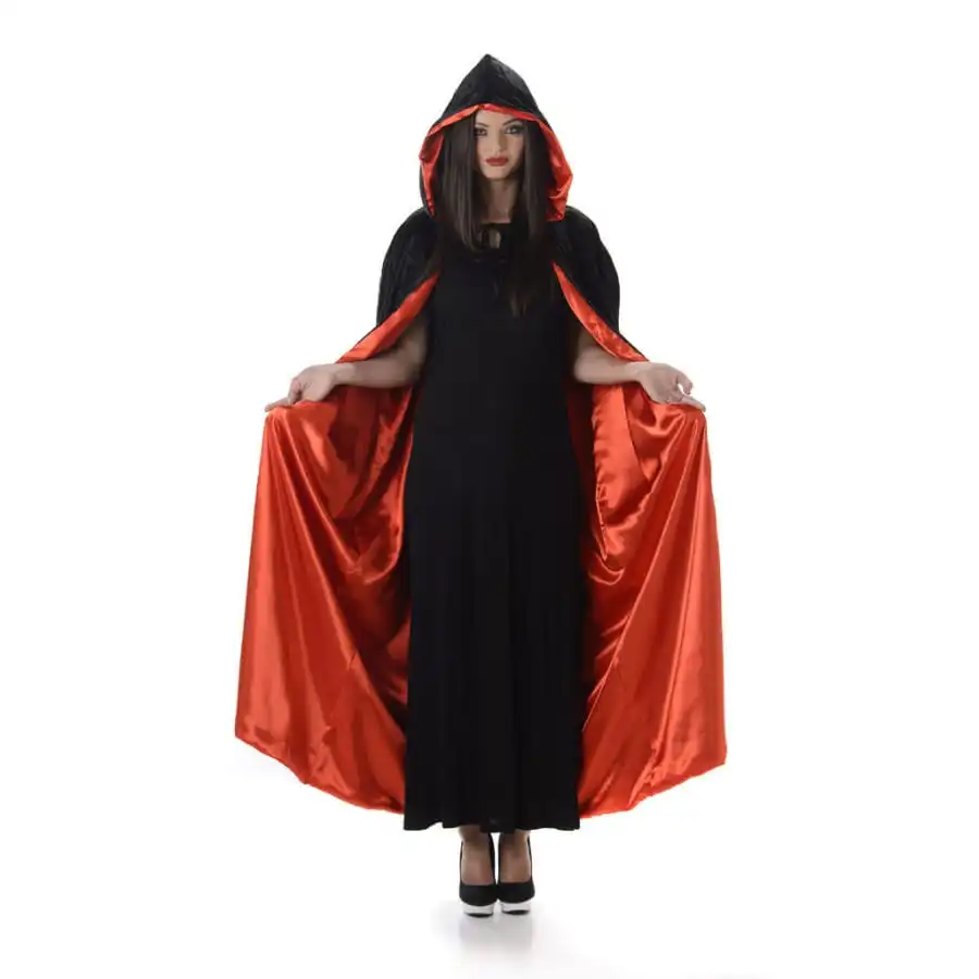 Faites une entrée remarquée lors du prochain Halloween grâce à notre longue cape noire doublée rouge satiné pour adulte.
