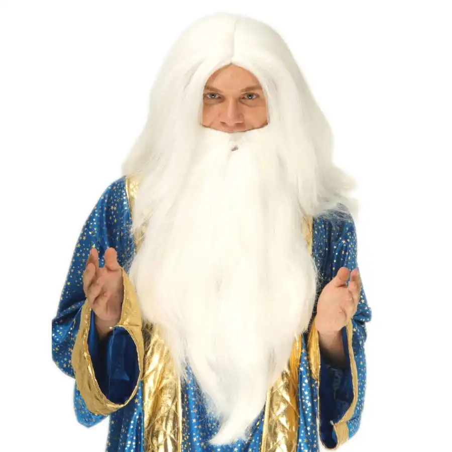 Apportez la touche finale à votre déguisement de sorcier grâce à cette Longue perruque blanche de sorcier avec barbe.