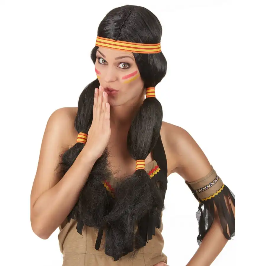 Cette Longue perruque Indienne avec couettes et bandeau vous aidera Ă vous transformer en vĂ©ritable Cheyenne lors d’une soirĂ©e Ă thème.