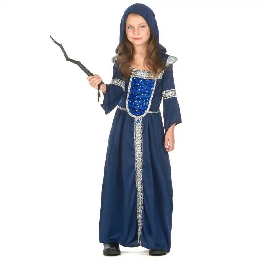La baguette visible sur la photo n’est pas incluse avec la longue robe bleue médiévale pour enfant. Mais vous la retrouverez dans la partie accessoire du site (section baguette magique).