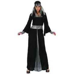 Vous êtes invitée à une soirée à thème historique? la longue robe médiévale noire et argentée vous conviendra parfaitement.
