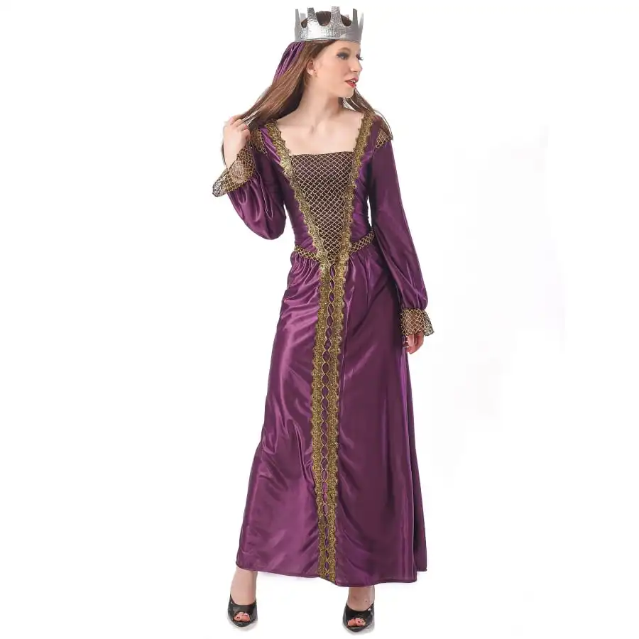 Plongez-vous au coeur d’un moyen-âge mouvementé le temps d’une soirée à thème, avec la longue robe médiévale violette de princesse.