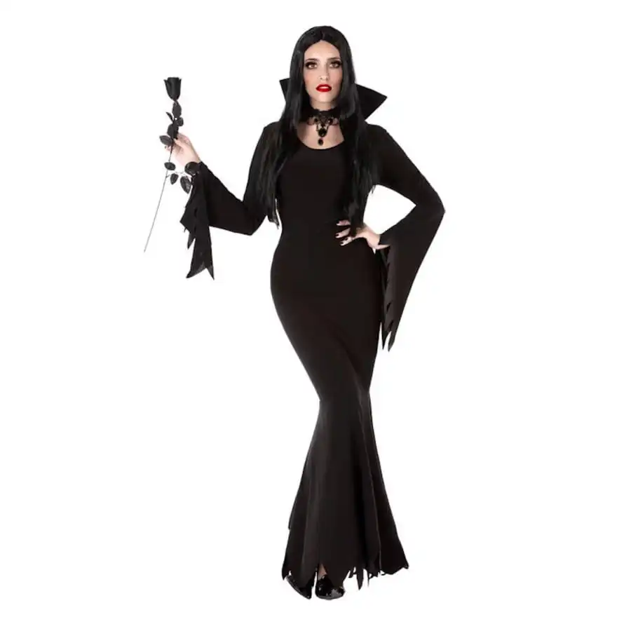 Pimentez une soirĂ©e d’Halloween relevĂ©e, avec cette longue robe noire unie près du corps.