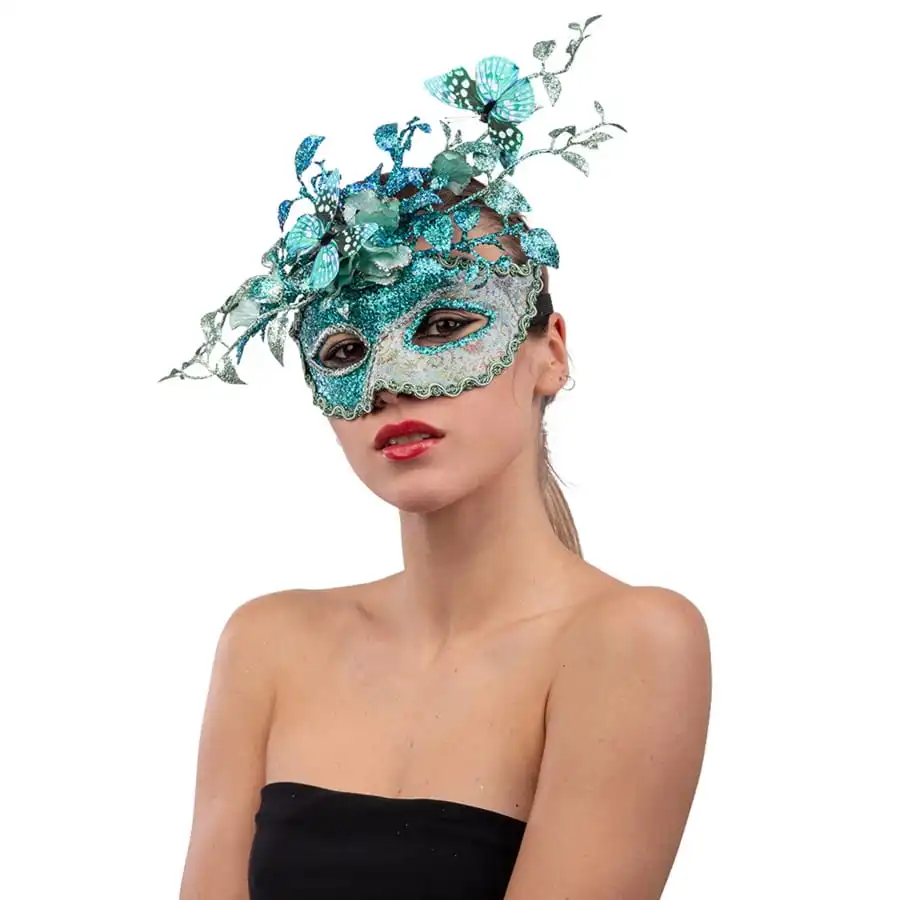 Accessoirisez votre tenue de carnaval grâce à ce Loup bleu avec branchage et papillons.