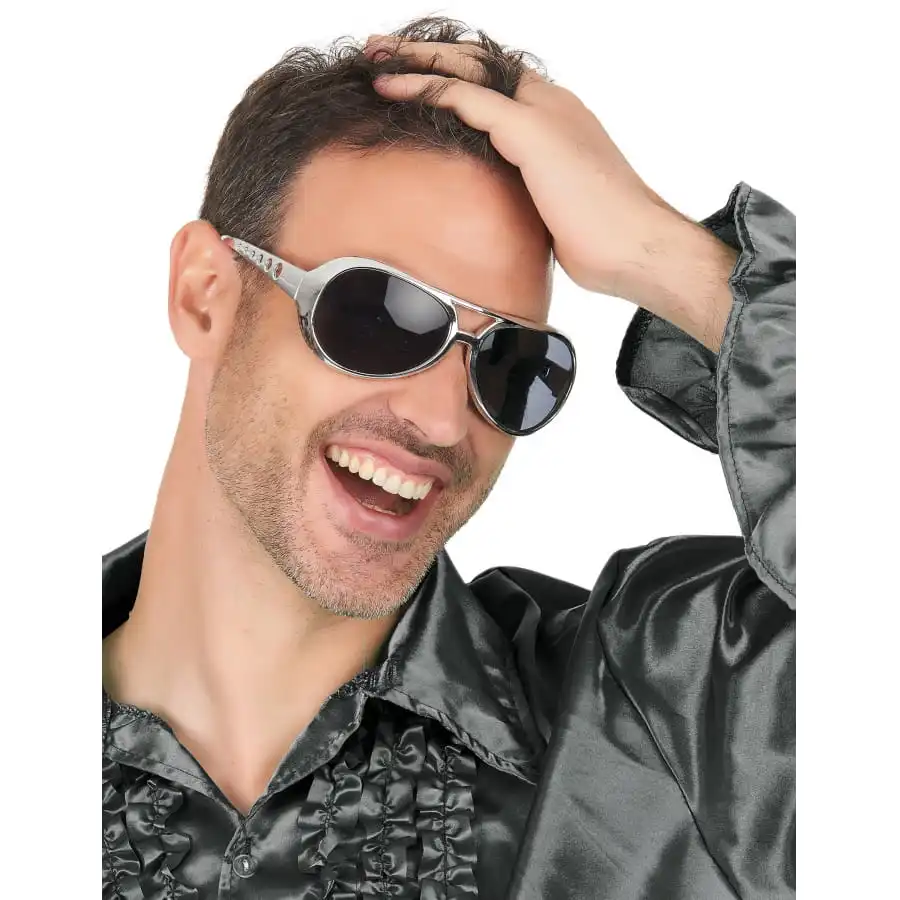 Les lunettes Elvis monture argentée sont un accessoire indispensable pour compléter votre costume du plus célèbre rocker de tous les temps, Monsieur Presley.