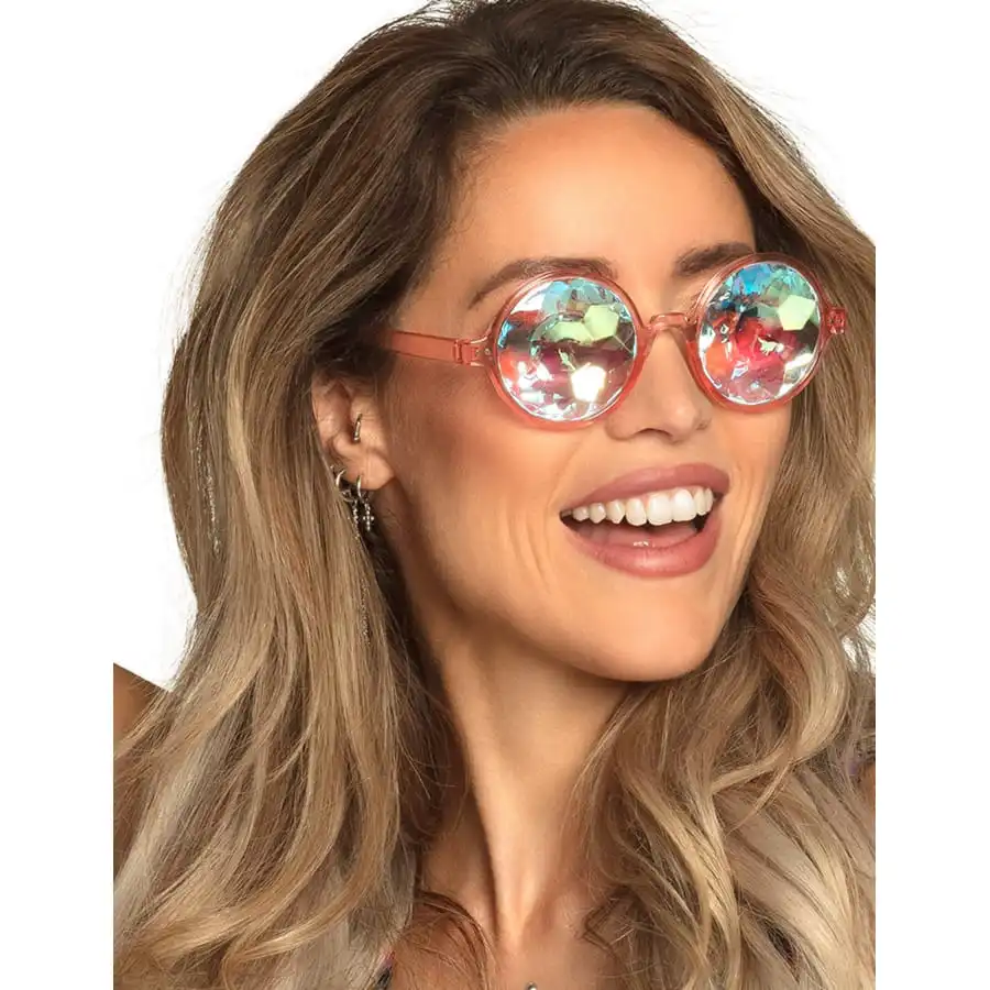 Les lunettes rondes Ă prismes couleur rose constituent l’accessoire idĂ©al pour incarner une danseuse dans annĂ©es rĂ©tro.