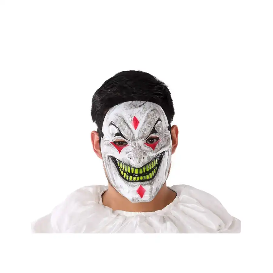 Le masque de clown tueur au sourire maléfique pour adulte est en plastique.