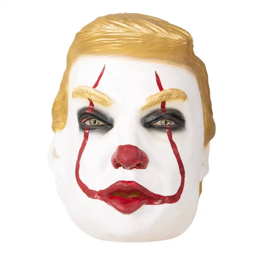 Ce masque reprend les traits d’un cĂ©lèbre ancien prĂ©sident, en y ajoutant un maquillage de clown terrifiant.