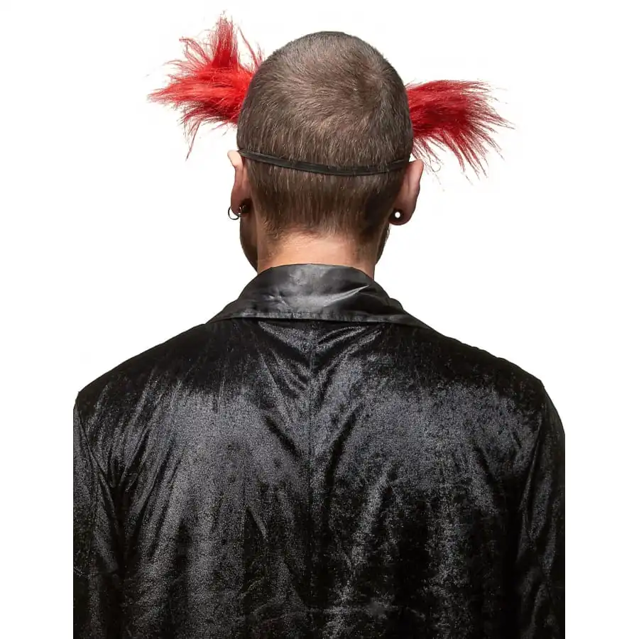 Il est confectionné à base de latex et possèdes une touffe de cheveux synthétiques rouges placée comme des cornes de chaque côté de la tête.