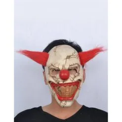 Avec son Ă©lastique Ă l’arrière pour un bon maintien sur la visage ce masque au allure de clown psychopathe fera fureur Ă Halloween.