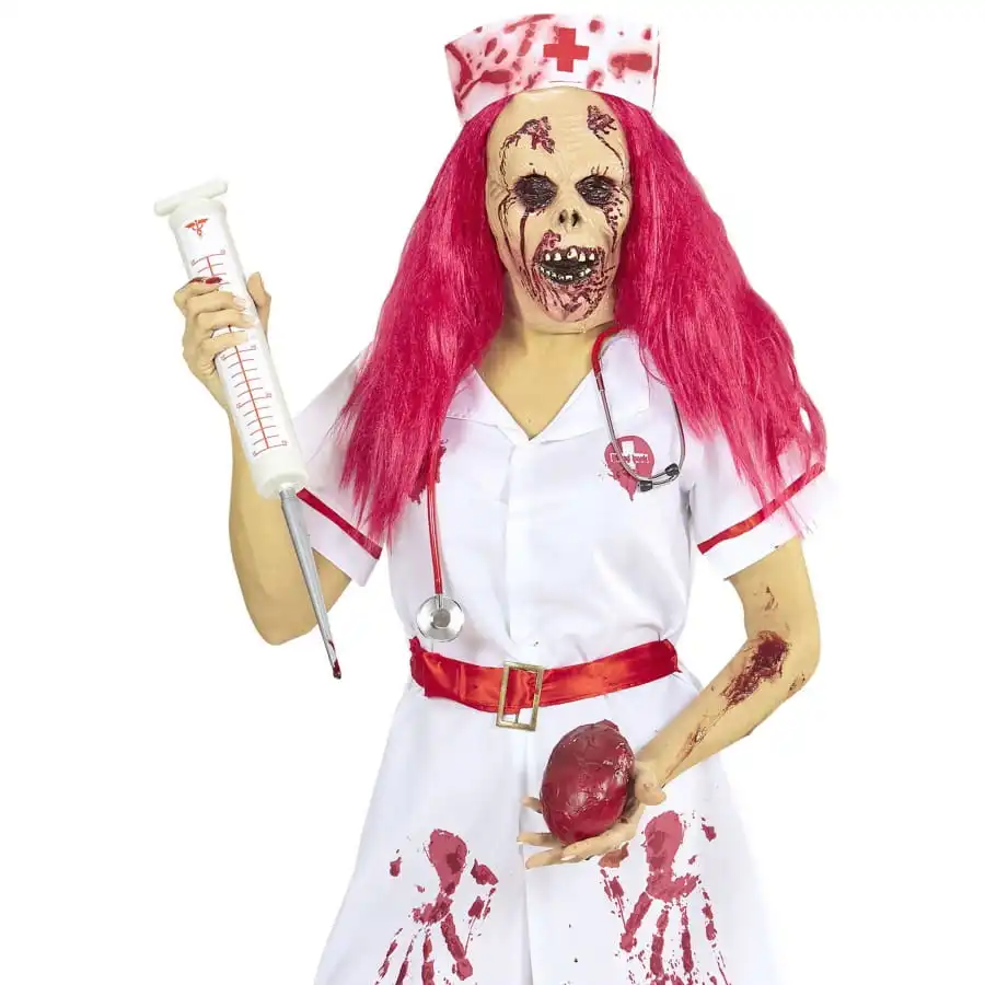 Ce kit d’accessoires complètera parfaitement votre costume d’infirmière mort vivant à l’occasion d’Halloween.