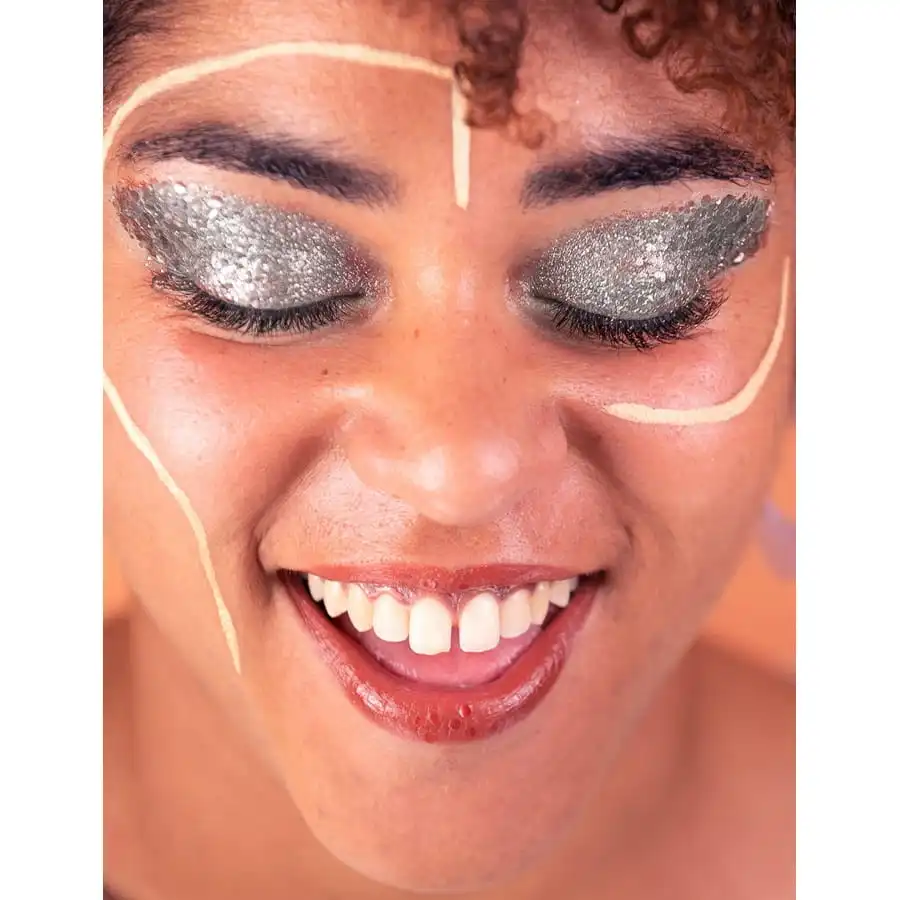 Parachevez votre déguisement des années rétro ou de science-fiction, avec les paillettes argentées visage, biodégradables.