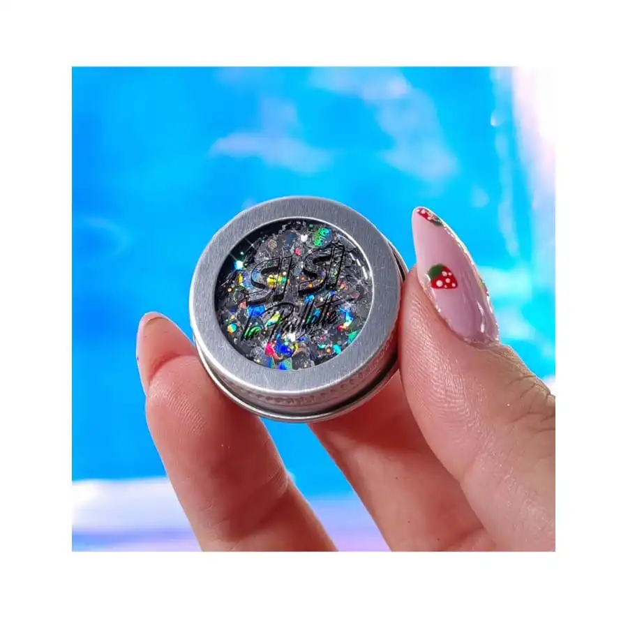 Les paillettes sont présentées dans un pot en aluminium recyclable de 5ml, soit environ 3,5g de paillettes fines, moyennes et grosses. Elles sont très facilement applicables avec un pinceau ou un baume, pour une brillance sur le corps, le visage, les cheveux et les ongles. Pour une meilleure tenue, nous vous conseillons d’appliquer un baume sur votre peau et d’y déposer ensuite les paillettes.