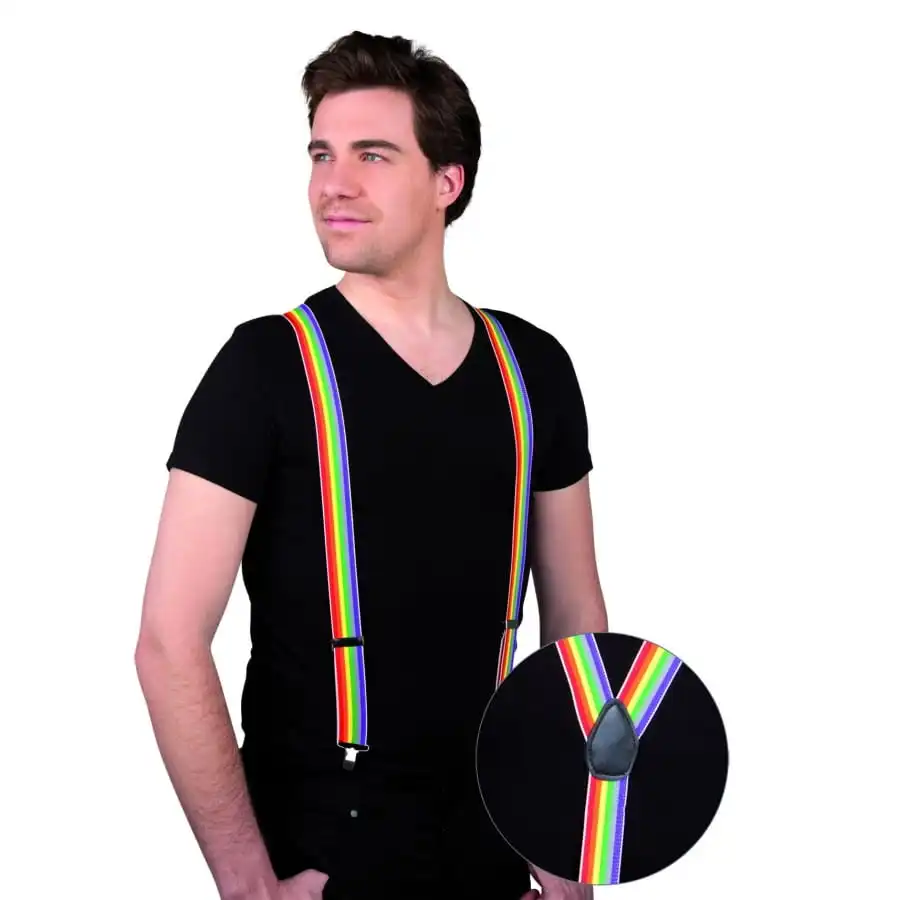 Dans l’univers du dĂ©guisement, les bretelles ne servent pas uniquement Ă faire tenir les jupes et les pantalons. Cette paire de bretelles multicolores en est la preuve parfaite. Avec ses multiples couleurs combinĂ©es comme sur un arc-en-ciel, cette paire de bretelles fera bon mĂ©nage avec un costume de clown ou de clownette. L’accessoire comporte des attaches en mĂ©tal pour un usage plus pratique.