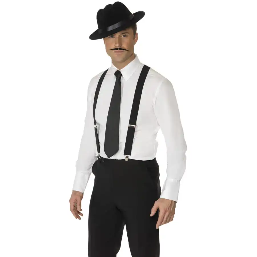 Les plus dangereux criminels ont un certain goĂ»t pour le chic. Ajoutez cette paire de bretelles noires Ă©lastiques au dessus de votre chemise et vous serez vĂŞtu comme un gangster de la maffia. Ces fameuses bretelles sont pourvues d’attaches en mĂ©tal pour faciliter leur fixation. A noter que l’article est adaptĂ© aux hommes comme aux femmes.