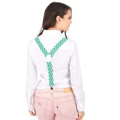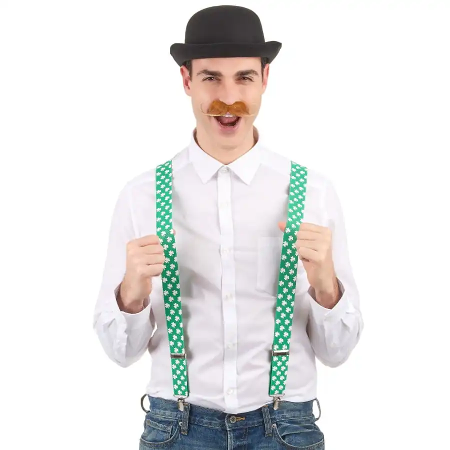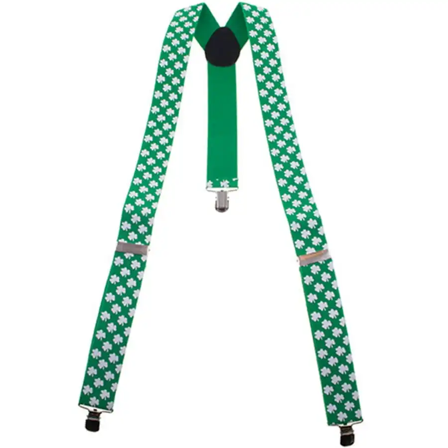 Découvrez notre paire de bretelles vertes et trèfles blancs.