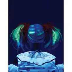Et pour parfaire cette perruque, un effet phosphorescent lui est donnĂ©, ce qui lui permet de s’illuminer dans le noir.