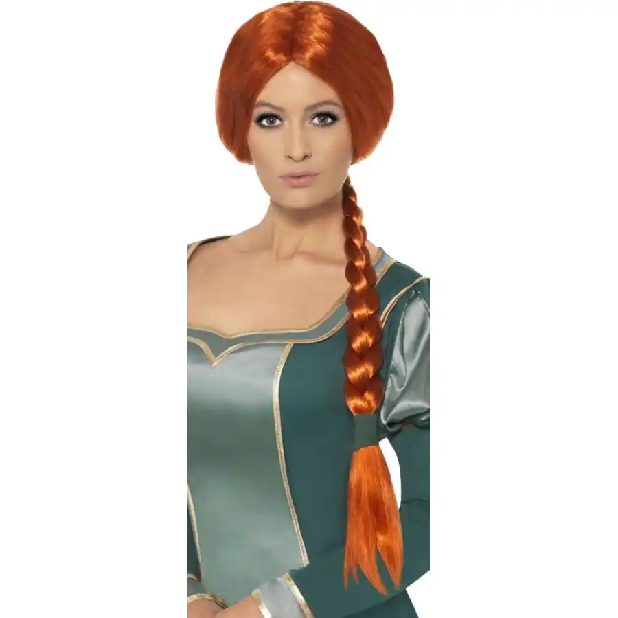 Pour incarner comme il se doit cette fameuse ogresse vous aurez besoin de cette perruque. Il est de couleur roux avec une longue tresse, les cheveux arrive mi-dos. Vous pourrez aussi incarner une princesse avec cette perruque licence Shrek.