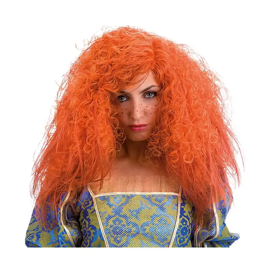 Les cheveux oranges sont frisés et décoiffés.