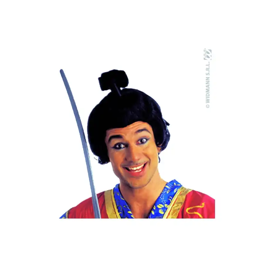 Perruque de Samouraï avec chignon. Cet accessoire pour homme est de couleur noir. Vous pourrez vous en servir pour compléter un déguisement de guerrier japonais.