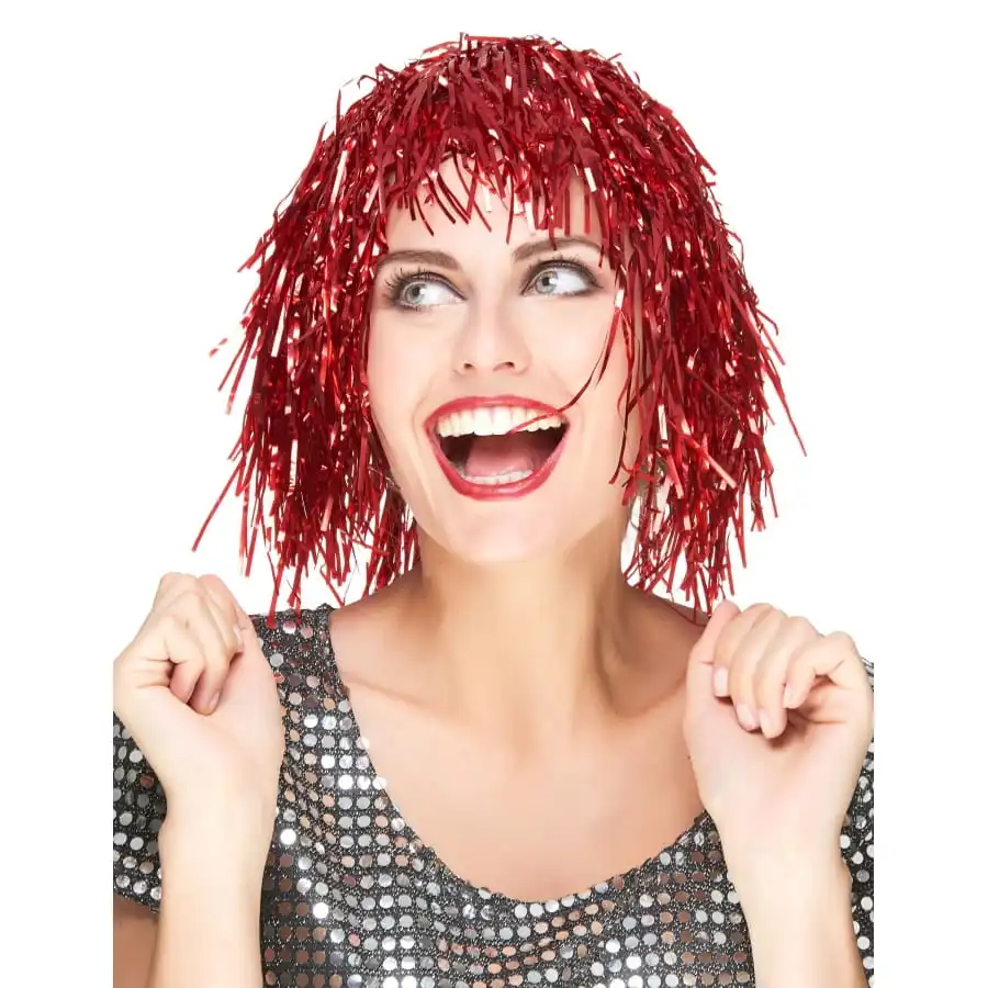 Cette perruque disco rouge métallique pour femme est un article séduisant et intrigant.