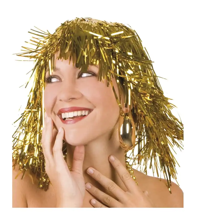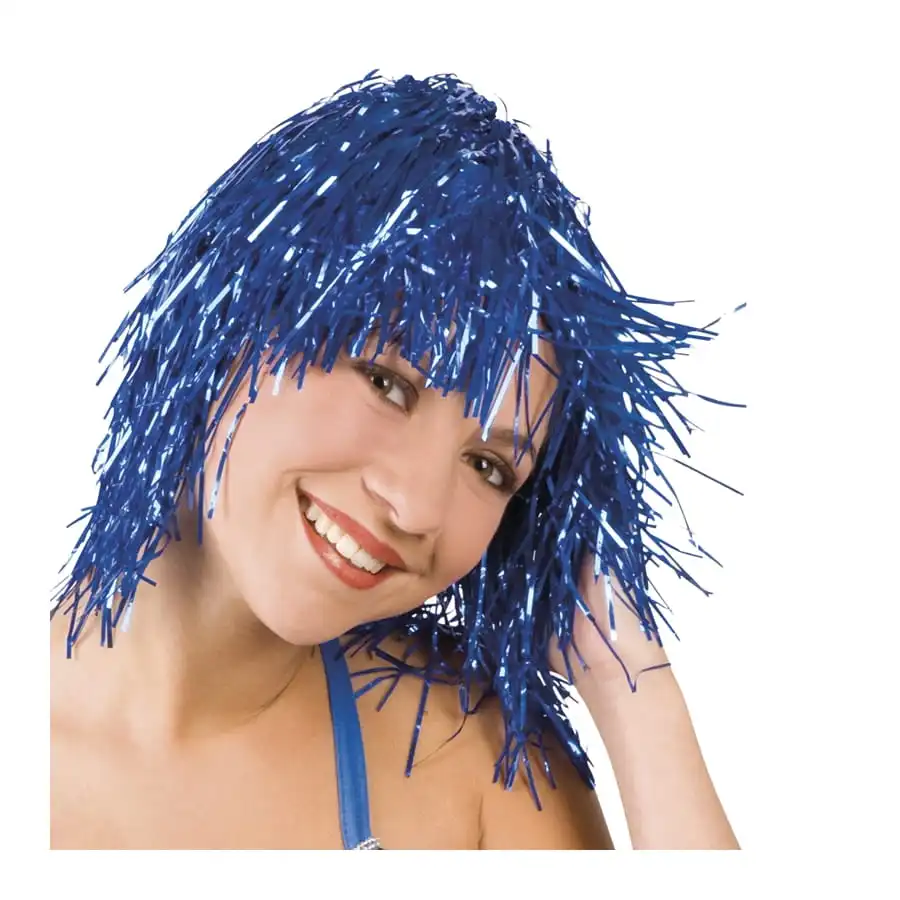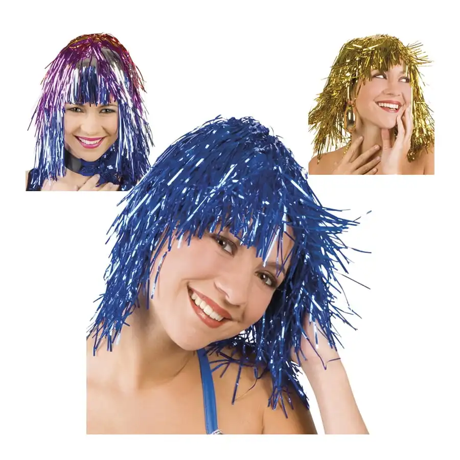 Mesdames, réveillez la disco girl qui sommeille en vous à l’aide d’une perruque qui a du punch ! Adoptez une coiffure originale en vous munissant d’une perruque métallisée. Avec des cheveux courts, des franges, et surtout des couleurs qui brillent de mille feux, cette perruque va faire de vous une véritable star. Ce modèle est disponible en trois couleurs : bleu, multicolore ou or.