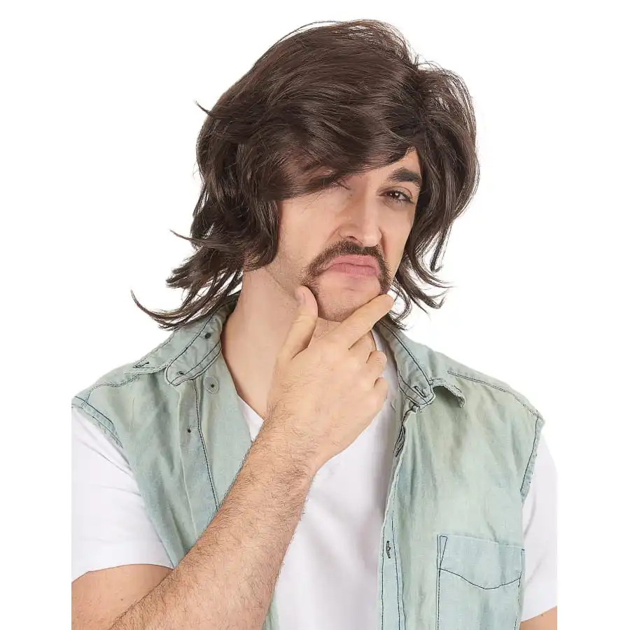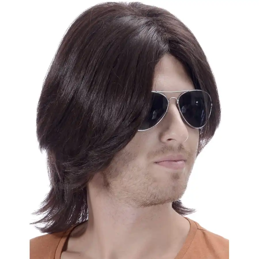 Revivez le temps d’une soirĂ©e, la belle Ă©poque et le look tendance des annĂ©es rĂ©tro avec cette perruque noire annĂ©es 70 pour homme, mi longue.