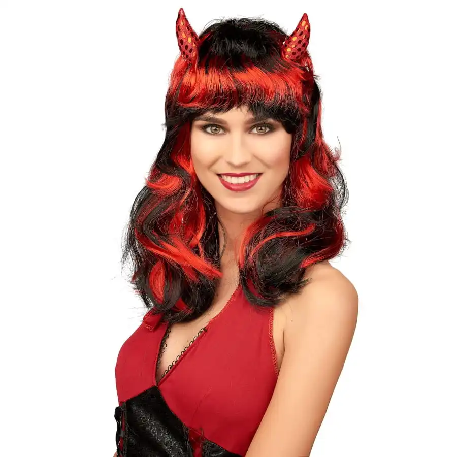 Cette perruque sera le complĂ©ment idĂ©al pour votre dĂ©guisement de diablesse Ă l’occasion d’halloween.