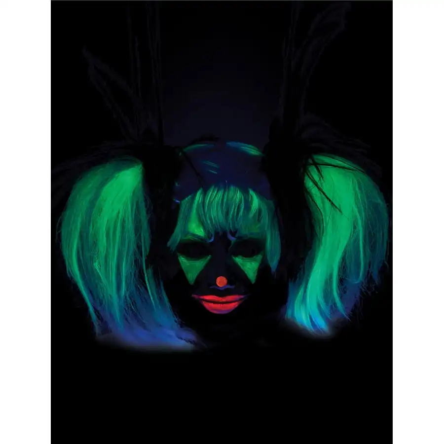 Profitez d’Halloween pour offrir du bon temps Ă votre fille, grâce la perruque phosphorescente avec couettes pour enfant.